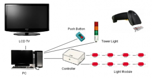 PICKING SYSTEM is suitable for the work that needed to prepare many kinds of goods. The light signal will be installed at the place where the goods have been kept and it will be controlled by computer to turn on or turn off at the right place. Moreover, this system can show the required amount of the goods helping us to reduce the time and the mistake in the work.